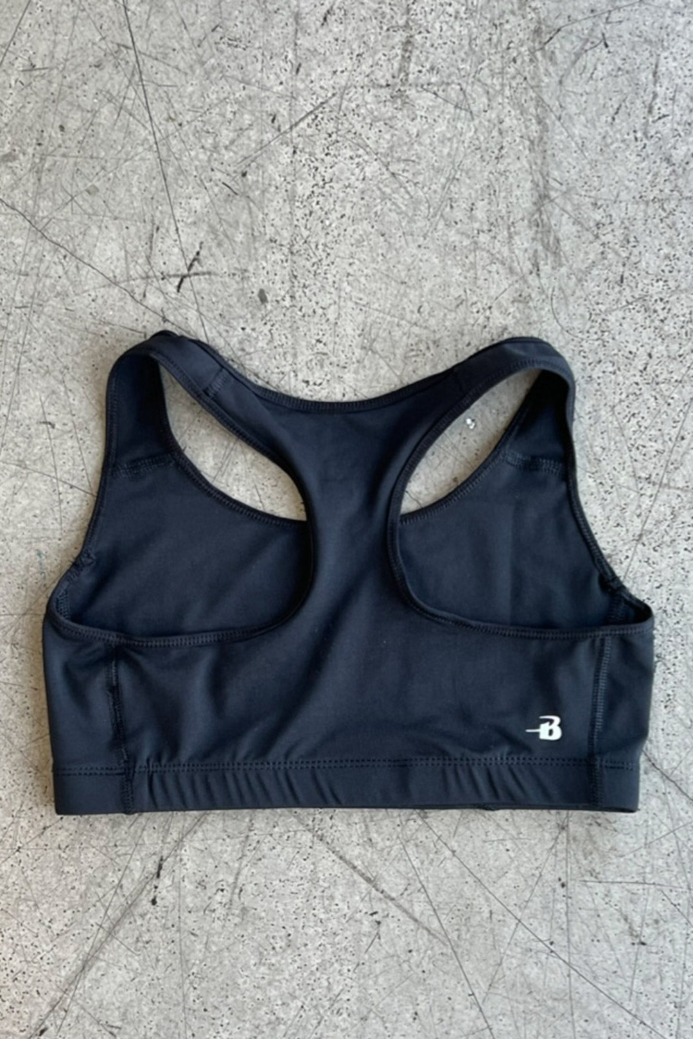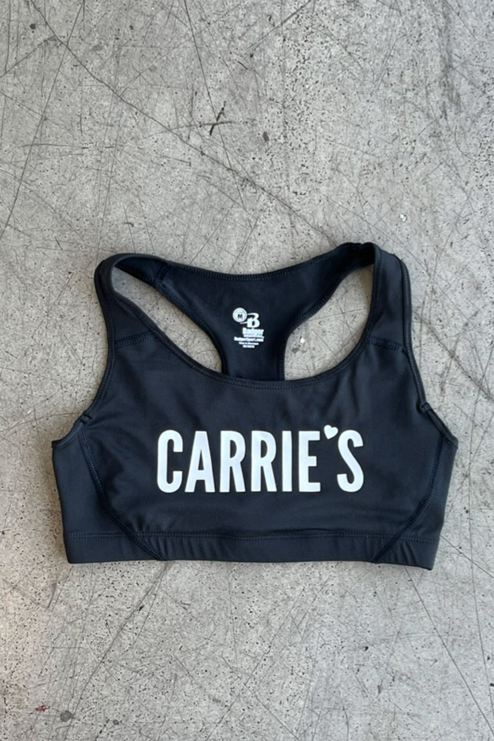 CARRIEʻS SPORTS BRA - BLACK WITH WHITE LETTERS